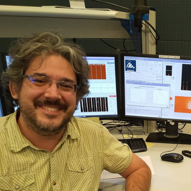 is a specialist of long-baseline optical interferometry with focus on instrumental development and data analysis but also on modelling massive stars. During in phD in Nice and post-doctoral fellowship in Bonn, he participated in the building, software development and astrophysical exploitation of the VLTI first generation instrument AMBER. He developed polychromatic model-fitting (fitomatic) and image reconstruction (self-cal module for MIRA) software allowing to fully exploit the AMBER capabilities and produce for instance the first high-angular-and-spectral images of a rotating disk around of massive supergiant B[e] star . Back in Nice as an associate Astronomer, he joined the MATISSE project, coordinating the development of the data reduction software, the MATISSE consortium programs on stellar physics and participating in the commissioning of the instrument. He now works in upgrading the VLTI within the GRAVITY+ project, developing a test-bench in Nice for the future adaptive optic systems for the 8m telescopes to enhance the sensibility of the array.